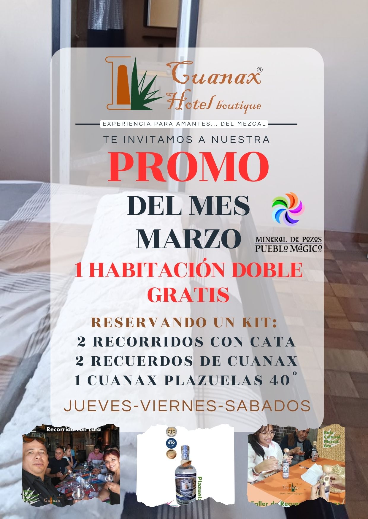 Hotel Cuanax te obsequia una noche gratis en habitación doble para el pueblo mágico de Mineral de Pozos, Guanajuato, al reservar un kit de experiencia: